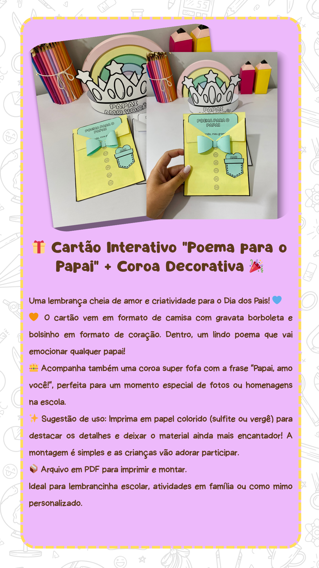 Cartão Interativo "Poema para o Papai" + Coroa Decorativa